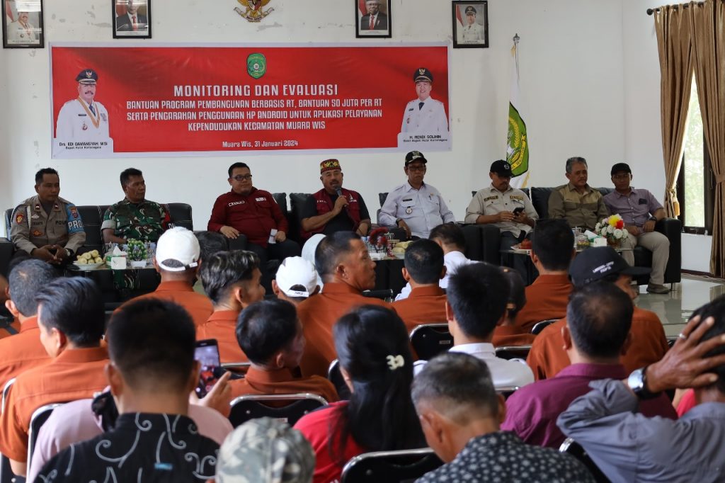 Hal tersebut disampaikannya saat melakukan monitoring dan evaluasi bantuan Program Pembangunan 50 juta per RT serta pengarahan penggunaan handphone android untuk pelayanan kependudukan di BPU Kecamatan Muara Wis, Rabu (31/1/2024).