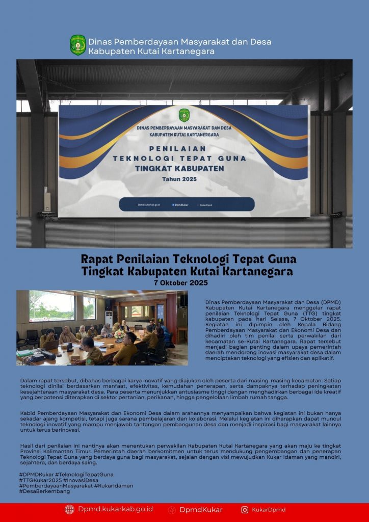 DPMD KUKAR Rapat Penilaian Teknologi Tepat Guna Tingkat Kabupaten Kutai Kartanegara 2025 Oktober 7, 2025 /