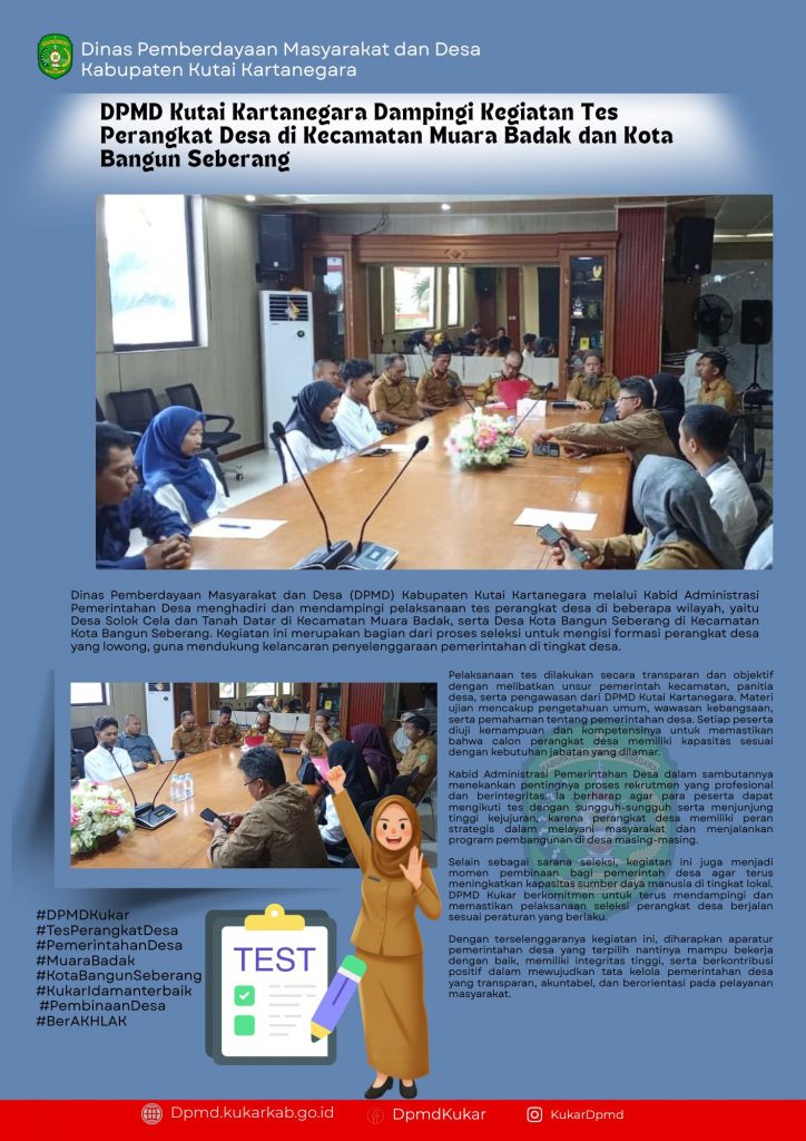 DPMD Kutai Kartanegara Dampingi Kegiatan Tes Perangkat Desa di Kecamatan Muara Badak dan Kota Bangun Seberang