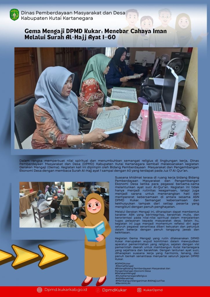DPMD KUKAR Gema Mengaji DPMD Kukar: Menebar Cahaya Iman Melalui Surah Al-Hajj Ayat 1–60 Oktober 23, 2025 /