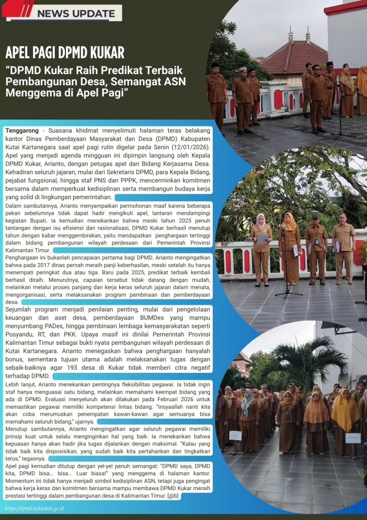 DPMD KUKAR DPMD Kukar Raih Predikat Terbaik Pembangunan Desa, Semangat ASN Menggema di Apel Pagi Januari 12, 2026 /